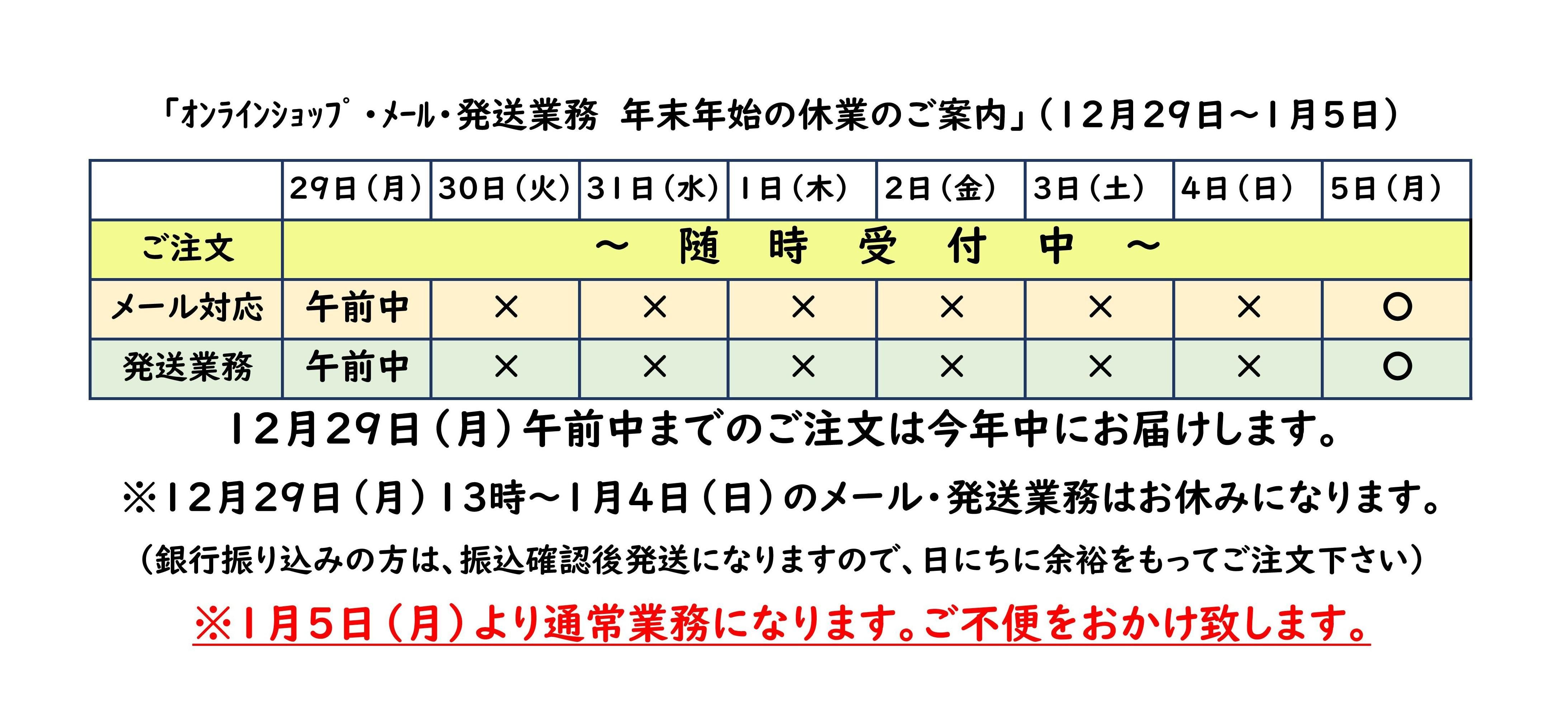 年末年始の営業につきまして、下記の通りご案内申し上げます。